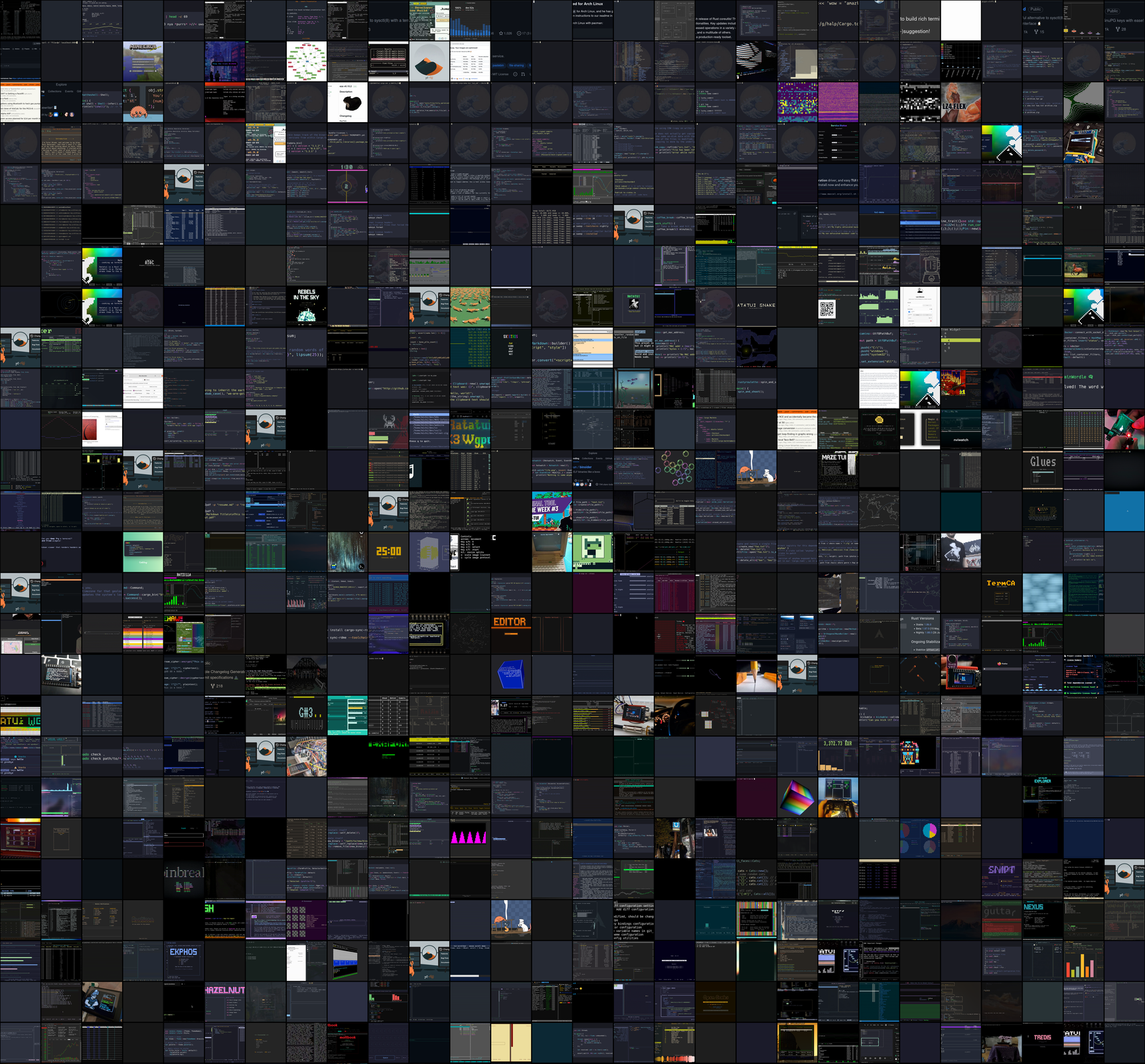 Above is a collage of screenshots from hundreds of Rust terminal and TUI projects